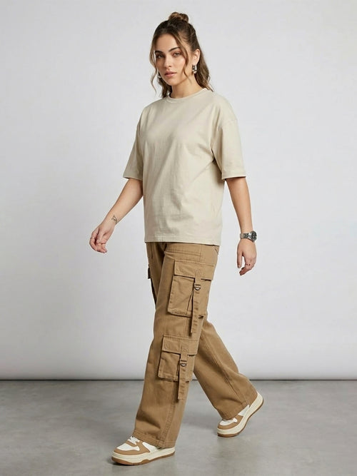 Style it with cargos, denim, or biker shorts for an effortlessly cool streetwear look. Ideal for college, travel, or casual hangouts, this oversized tee blends fashion with comfort.